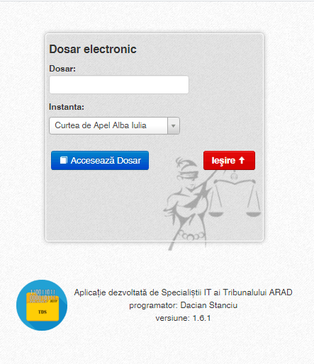 • Dosarul electronic este o aplicație dezvoltată de specialiștii I.T. din cadrul Tribunalului Arad și implementată cu sprijinul acestora și cu acordul Curții de Apel Timișoara.