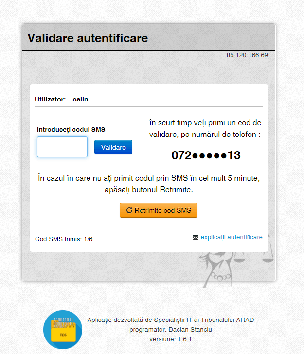 • Se introduce codul primit prin SMS format din șase cifre.
